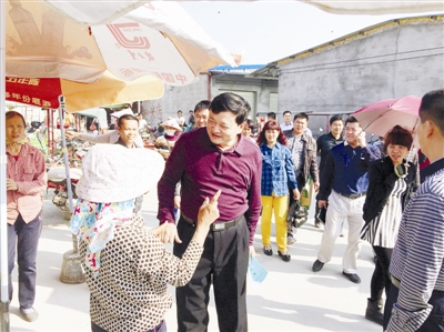 圖為林北川(中)在黃流鎮臨時市場調研。