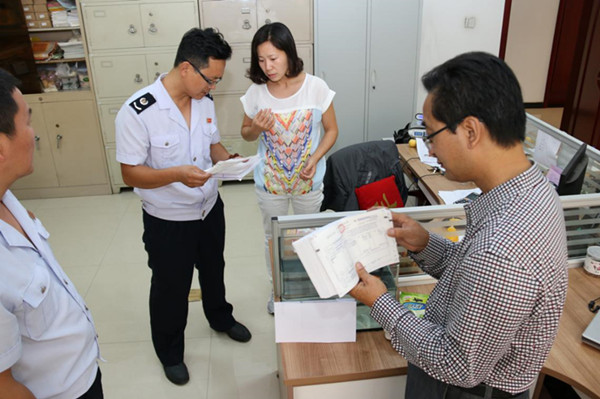 圖為石家莊市長(zhǎng)安區(qū)紀(jì)委監(jiān)委與稅務(wù)部門(mén)聯(lián)合檢查餐飲場(chǎng)所發(fā)票。