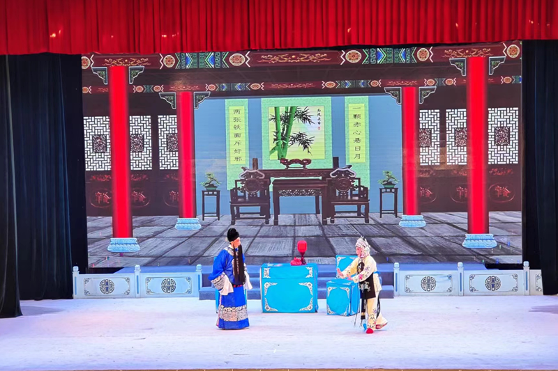 圖為陽原縣青年晉劇團(tuán)表演的廉政戲曲《明公斷》演出現(xiàn)場。