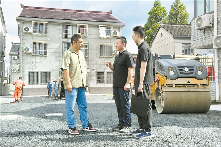 上海市嘉定區紀委監委緊盯農村公路安全生產、施工質量管控等方面開展監督檢查,防范工程建設領域廉潔風險,確保村級項目廉潔高效推進。圖為近日,該區紀檢監察干部在安亭鎮聯群村道路瀝青改造工程項目現場走訪。馮葉露 攝