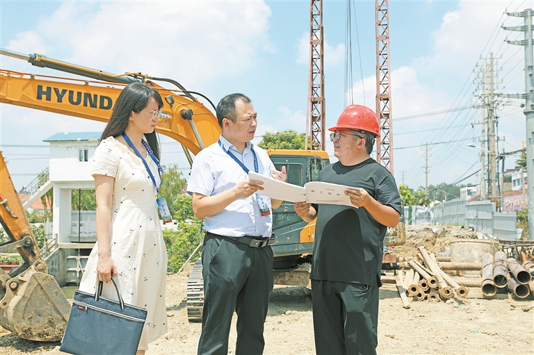 江蘇省金湖縣紀委監委聚焦農村公路建設招標投標、質量驗收、管護運營等關鍵環節,下沉一線跟進監督檢查,嚴查黨員干部侵占挪用、權錢交易、失職失責等行為,以精準有力監督護航鄉村振興。圖為近日,該縣紀檢監察干部在金北街道三河橋改建項目現場了解相關情況。邵傳雯 攝