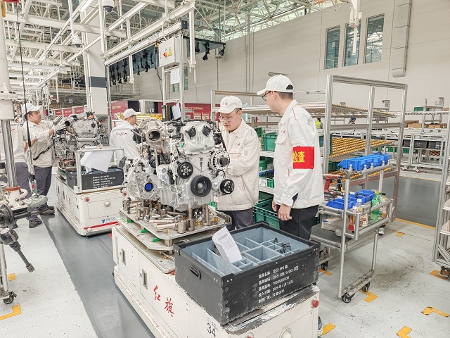 近日,駐中國一汽紀檢監察組干部深入紅旗制造中心繁榮廠區總裝車間,跟進監督紅旗新車型項目質量管理情況。張成堯 攝